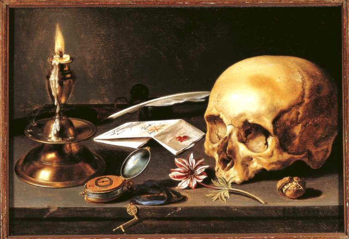Czy w obrazie Willema Claeszoona Hedy kryje się coś jeszcze? To pozornie typowe dla szkoły z Haarlem monochromatyczne przedstawienie martwej natury w stylu wykwintnego bankietu. Oczywiście, przedmioty tam zgromadzone, niedokończony tort, niedopite, przewrócone i stłuczone kielichy, zegarek, łupiny orzecha to nic innego, jak nasze nagle przerwane życie – ukazanie zjawisko przemijania – Vanitas. Lecz na […]