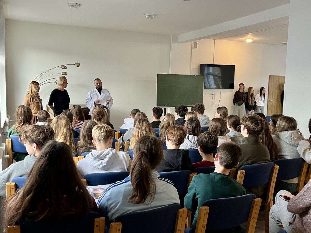 Stacje działały dokładnie jak w prawdziwej grze: limit 15 minut, strażnicy komnat pilnujący czasu i… rosnące emocje, bo z każdą salą uczestnicy byli bliżej odnalezienia zaginionego absolwenta. W auli czekał list-zagadkowy „od geniusza”, a finałem była krótkie podsumowanie i oczywiście dużo śmiechu oraz satysfakcji.