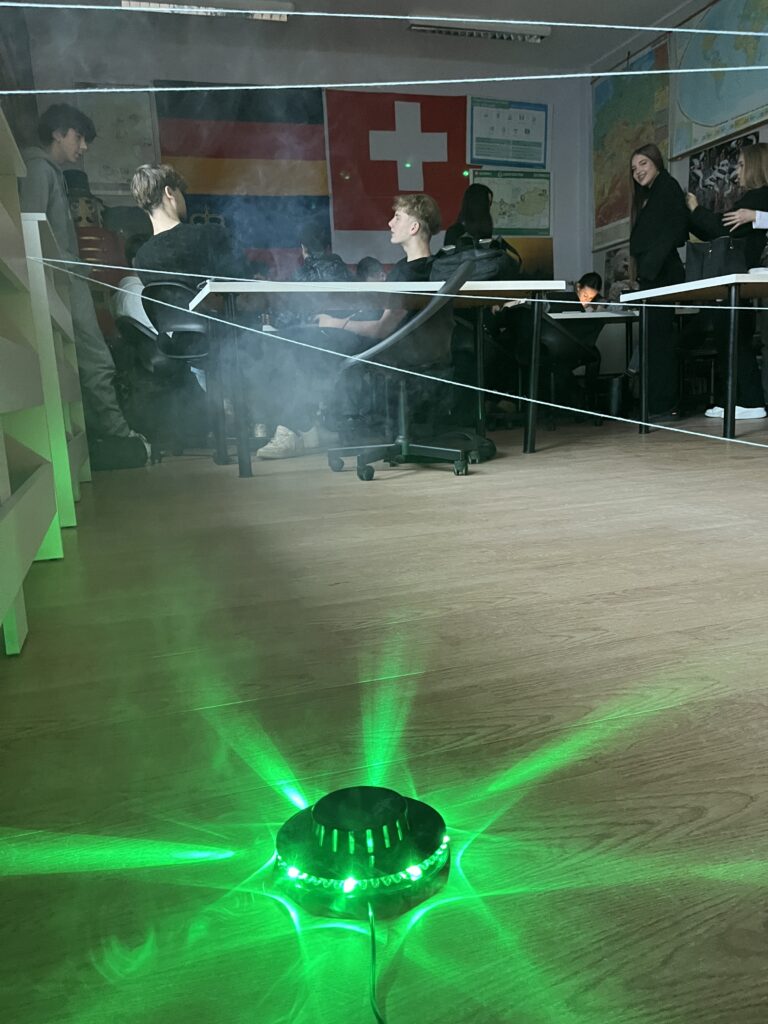 Cała zabawa była częścią scenariusza „Poszukiwanie zaginionego absolwenta”, w którym każda grupa musiała przejść przez sześć tematycznych stacji — od języka polskiego i historii, przez angielski, niemiecki, chemię, biologię, matematykę, aż po japoński, informatykę i historię sztuki. Na każdej z nich czekało wyzwanie, zagadka lub szyfr, a rozwiązania uczestnicy wpisywali do specjalnych paszportów escape roomu.