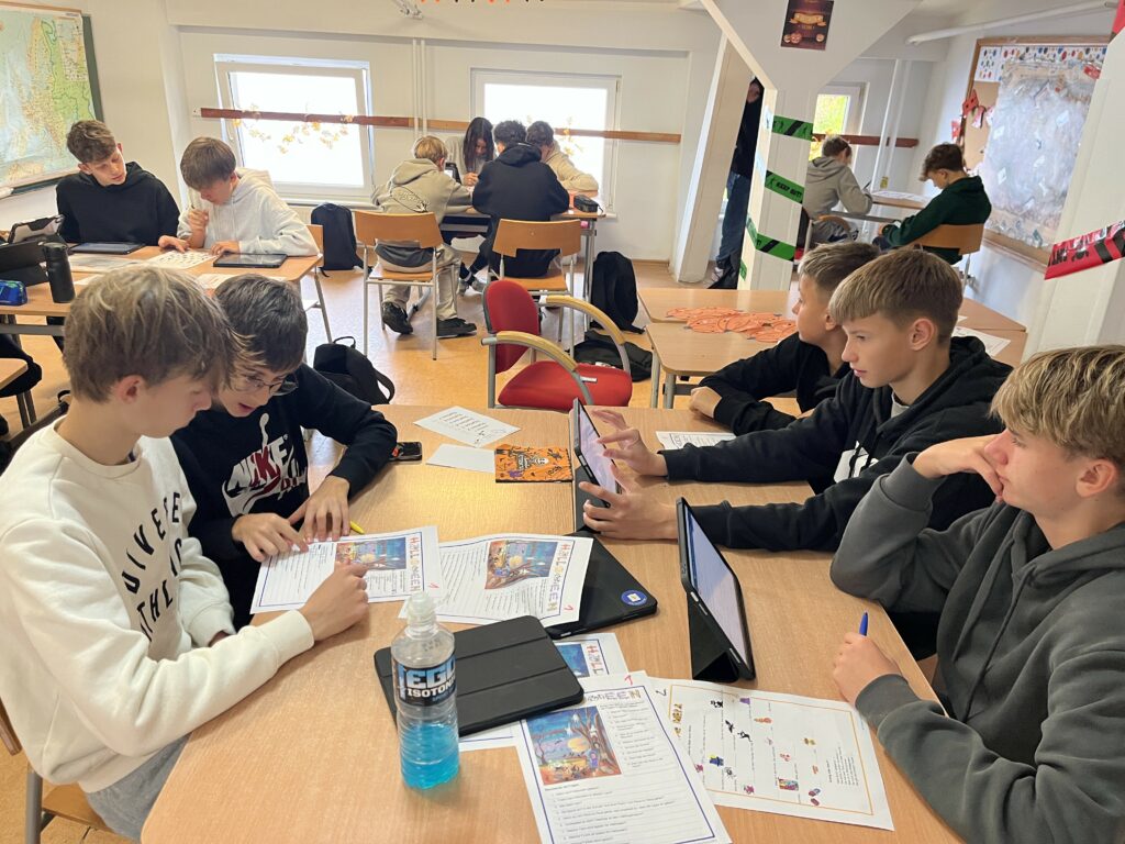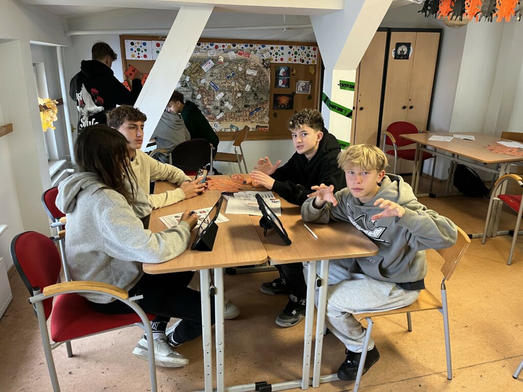 Dzisiejsza lekcja niemieckiego była zupełnie inna niż zwykle! Uczniowie przenieśli się w świat duchów, czarownic i potworów, biorąc udział w Halloweenowych stacjach zadaniowych 👻.