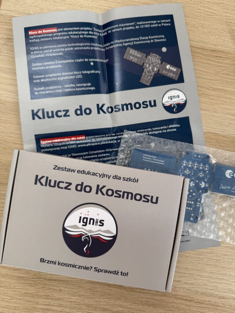 W ramach projektu nasza młodzież otrzymała od Polskiej Agencji Kosmicznej specjalne zestawy edukacyjne. Zadanie jest z pozoru proste: zbudować klucz telegraficzny oraz akustyczny sygnalizator świetlno-dźwiękowy (LED).Dlaczego akurat klucz telegraficzny?