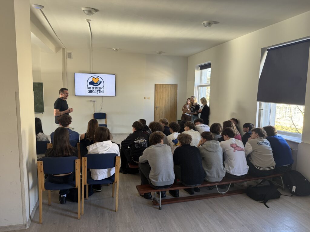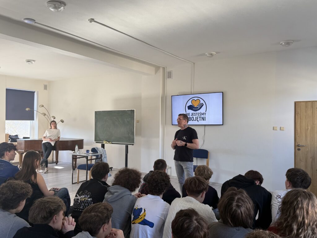 W ostatnich dniach uczniowie I Prywatnego Liceum w Szczecinie uczestniczyli w spotkaniu edukacyjnym z panem Mariuszem, poświęconym problematyce bezdomności. Wydarzenie zostało zorganizowane w ramach realizowanego przez uczniów projektu społecznego „Nie Jesteśmy Obojętni” w ogólnopolskiej olimpiadzie Zwolnieni z Teorii.Spotkanie odbyło się w formie dwóch jednogodzinnych wykładów przeprowadzonych dla dwóch grup uczniów. Była to cenna okazja do pogłębienia wiedzy na temat przyczyn i konsekwencji bezdomności oraz do refleksji nad rolą empatii i odpowiedzialności społecznej w życiu młodych ludzi.Dziękujemy panu Mariuszowi za podzielenie się swoim doświadczeniem oraz inspirującą i wartościową rozmowę.