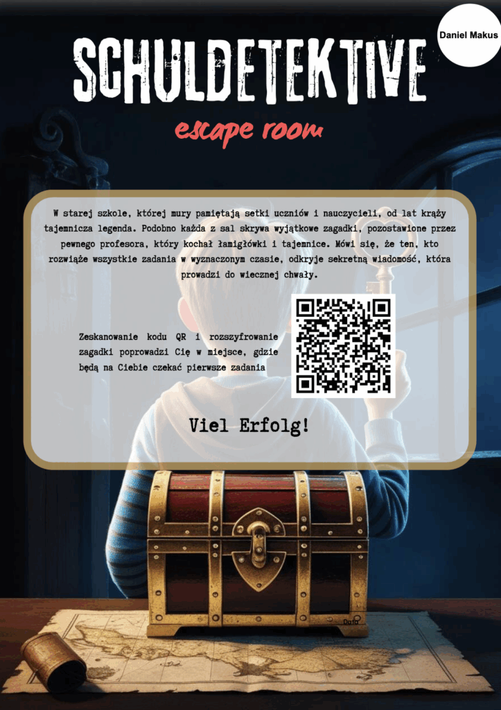 Projekt „Schuldetektive” był jednodniową grą edukacyjną w formie escape roomu, zorganizowaną na lekcjach języka niemieckiego przez Daniela Makusa. Uczniowie wcielili się w rolę szkolnych detektywów, których zadaniem było rozwiązywanie zagadek ukrytych w różnych miejscach szkoły. W trakcie wydarzenia uczestnicy przemieszczali się między wyznaczonymi salami, wykonując zadania wymagające znajomości języka niemieckiego, logicznego myślenia oraz współpracy.