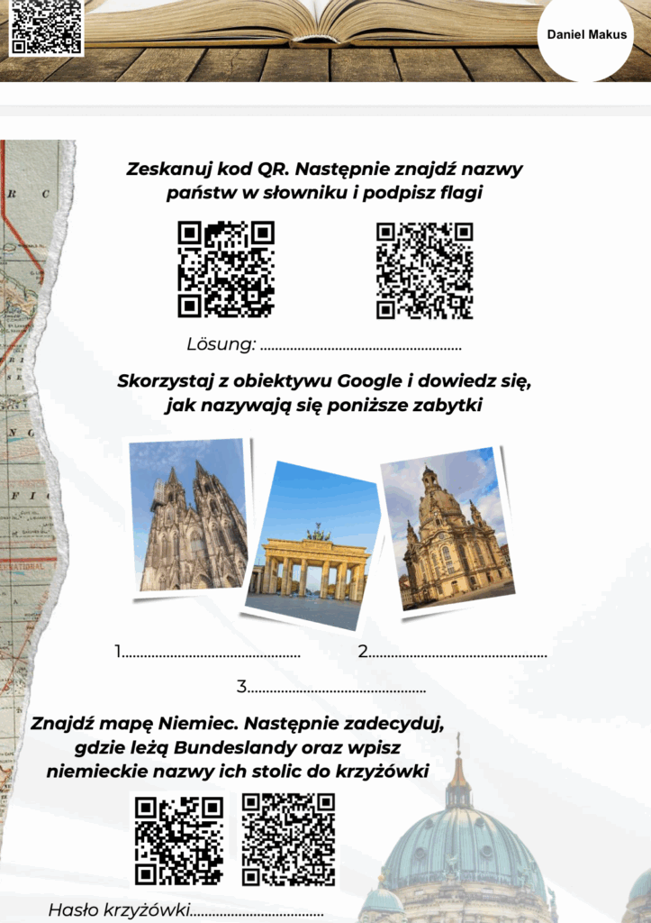- rozpoznawanie państw, flag i zabytków krajów niemieckojęzycznych,