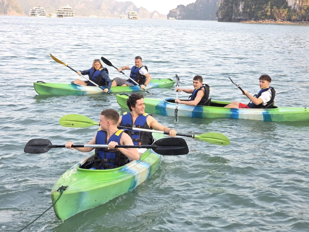 Kolejnym niezwykłym etapem wycieczki był przejazd nad słynną Zatokę Ha Long. Uczniowie wzięli udział w rejsie statkiem pośród malowniczych wapiennych skał, zwiedzali jaskinie oraz pływali kajakami. Dla wielu uczestników było to jedno z najbardziej niezapomnianych doświadczeń – połączenie kontaktu z dziką naturą, relaksu oraz wspólnej integracji.