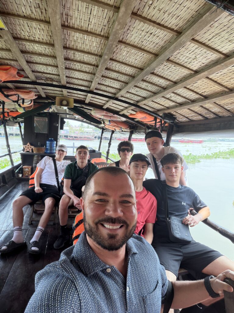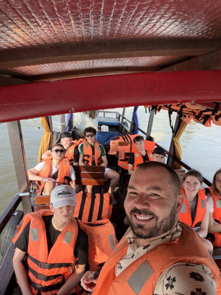 Program obejmował również spotkanie z kulturą religijną kraju – młodzież odwiedziła świątynię Cao Dai, gdzie mogła obserwować ceremonie religijne łączące elementy różnych tradycji. Dużym przeżyciem był także rejs po Delcie Mekongu, podczas którego uczniowie poznali życie mieszkańców regionu, odwiedzili warsztaty rzemieślnicze oraz spróbowali lokalnych owoców i potraw.