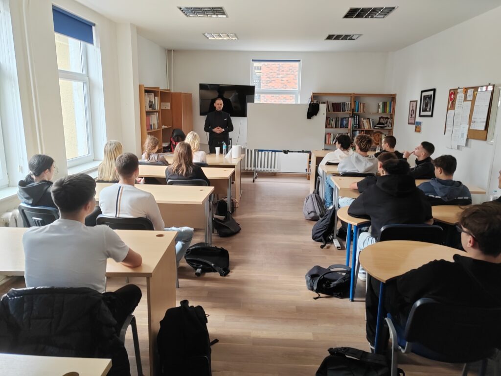 W naszej szkole mieliśmy wyjątkowy zaszczyt przeprowadzić spotkanie z przedstawicielem Szczecińskiej izby komorniczej. Pan Piotr Lebioda otwarcie wyjaśniał i dyskutował z uczniami na temat wszelkich aspektów zawodu komornika obalając przy tym wiele mitów związanych z tym zawodem. Godzinne spotkanie było niezwykle interesujące i gdyby nie fakt końca lekcji to wydarzenie trwało by znacznie dłużej. Pan Piotr obiecał, że w przyszłym roku ponownie nas odwiedzi by poszerzyć wiedzę prawną naszych uczniów.