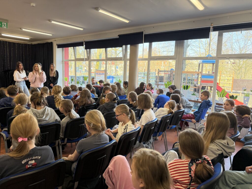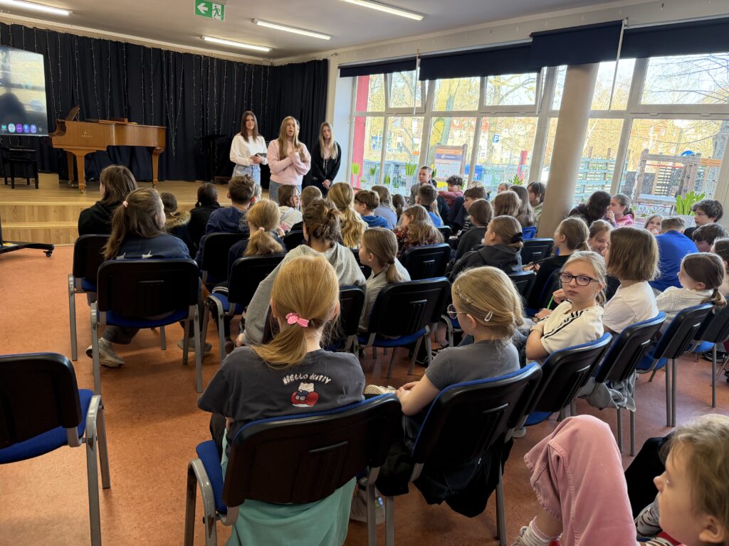 Spotkanie skierowane było do uczniów młodszych klas (4-6) i miało na celu w przystępny oraz angażujący sposób przybliżyć tematykę szczepień, odporności organizmu oraz profilaktyki zdrowotnej. Dziewczyny z dużym zaangażowaniem opowiadały o tym, jak działa układ odpornościowy, dlaczego szczepienia są ważne oraz jak dbać o zdrowie na co dzień.