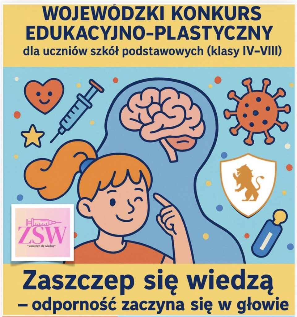 Wojewódzki Konkurs Edukacyjno-Plastyczny „Zaszczep się wiedzą – odporność zaczyna się w głowie”, realizowany był w ramach ogólnopolskiej olimpiady Zwolnieni z Teorii.